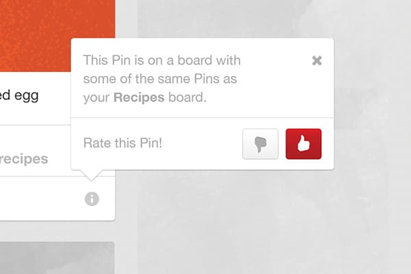 Yeni özelliğin karşınıza çıkması durumunda “i” harfinin üzerine tıklayarak size gösterilen benzer pini beğenebilir veya beğenmeyebilirsiniz. Bu sayede Pinterest mühendisleri algoritma üzerine daha fazla geliştirme yapabileceklerdir. Yine aynı şekilde beğenmeniz durumunda konu ile alakalı daha çok Pin sizi bekliyor olacak.